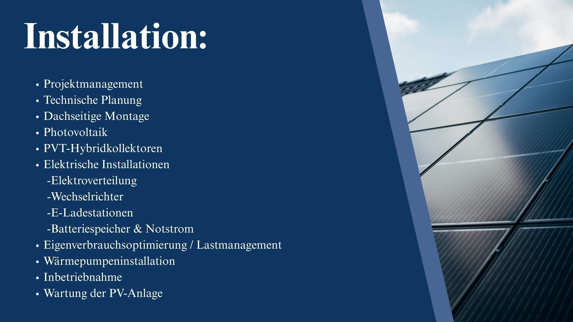 Wir planen, installieren und warten Ihre Photovoltaikanlage – alles aus einer Hand für erneuerbare Energien.